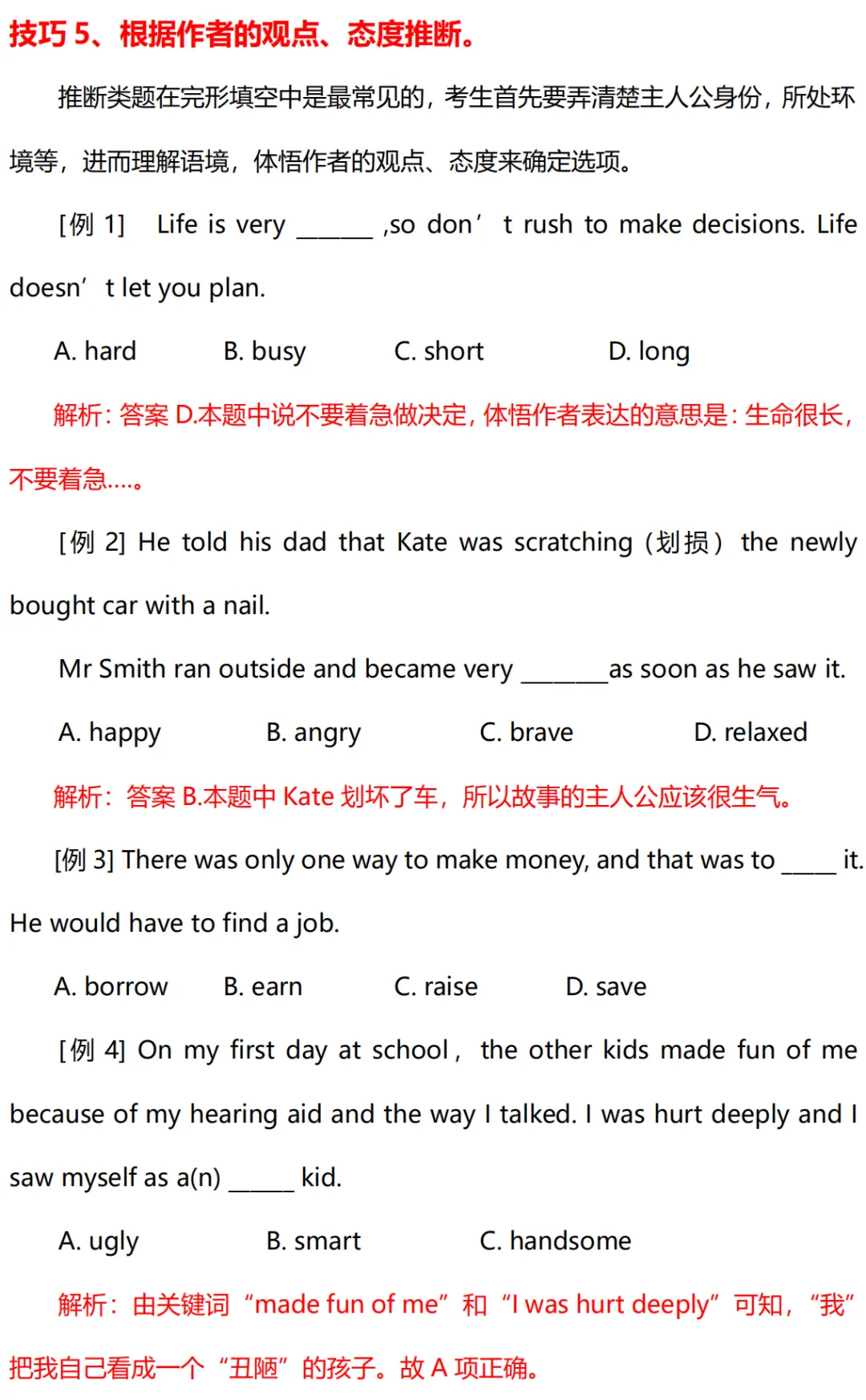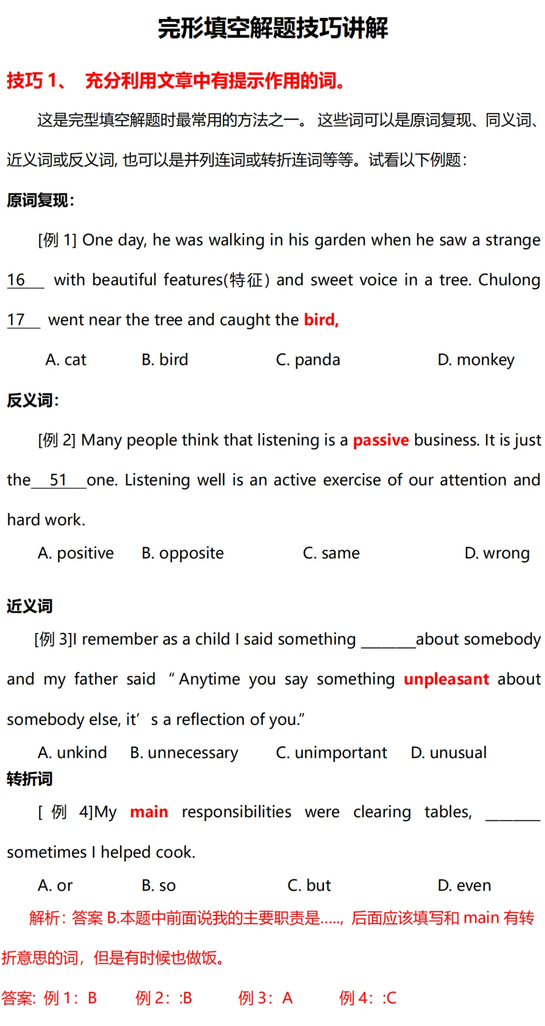 初中英语完形填空怎么才能拿到满分?今天给大家分享完形填空的7种解题技巧(附实例解析),做完形填空再也不怕丢分了!