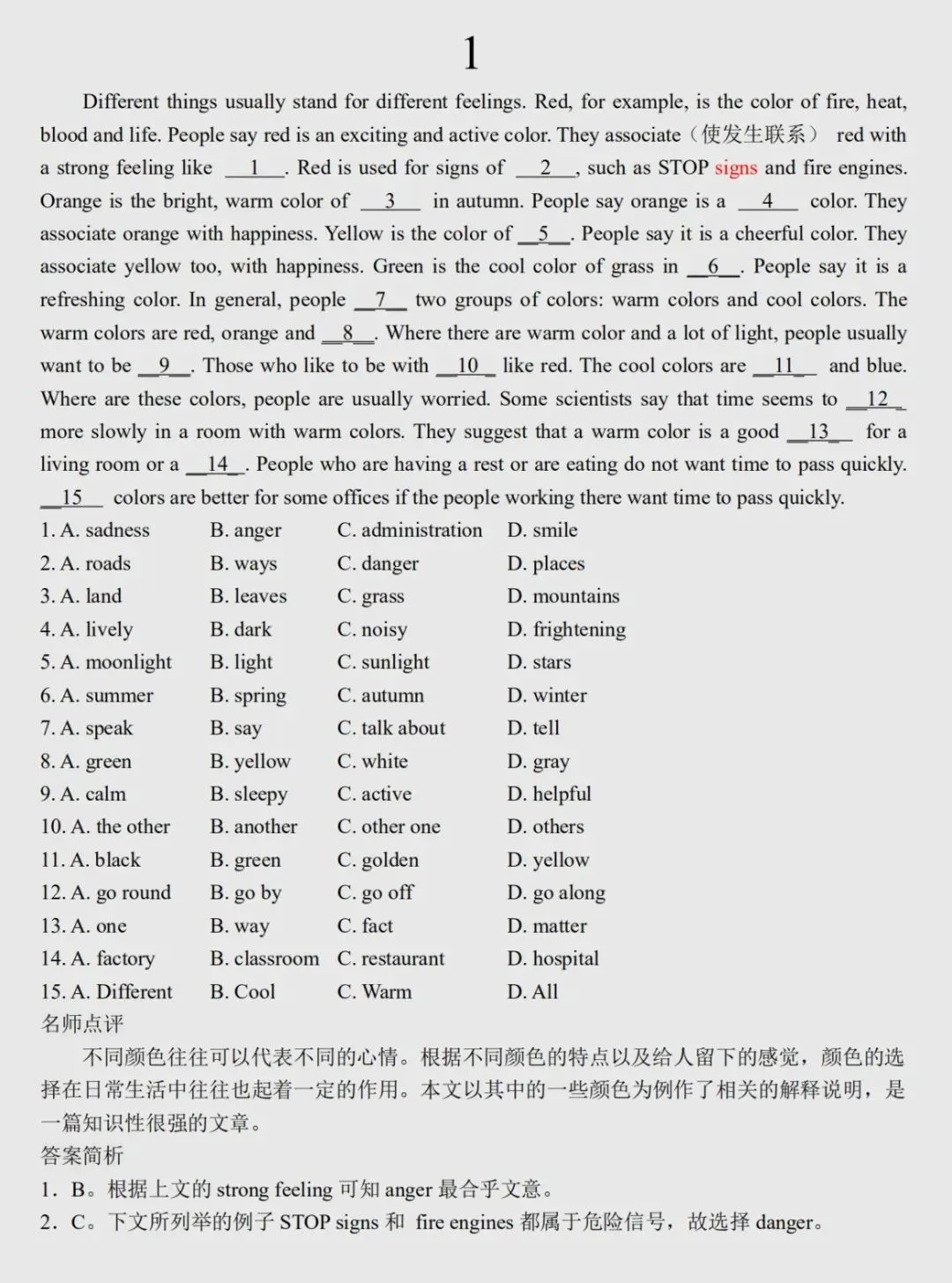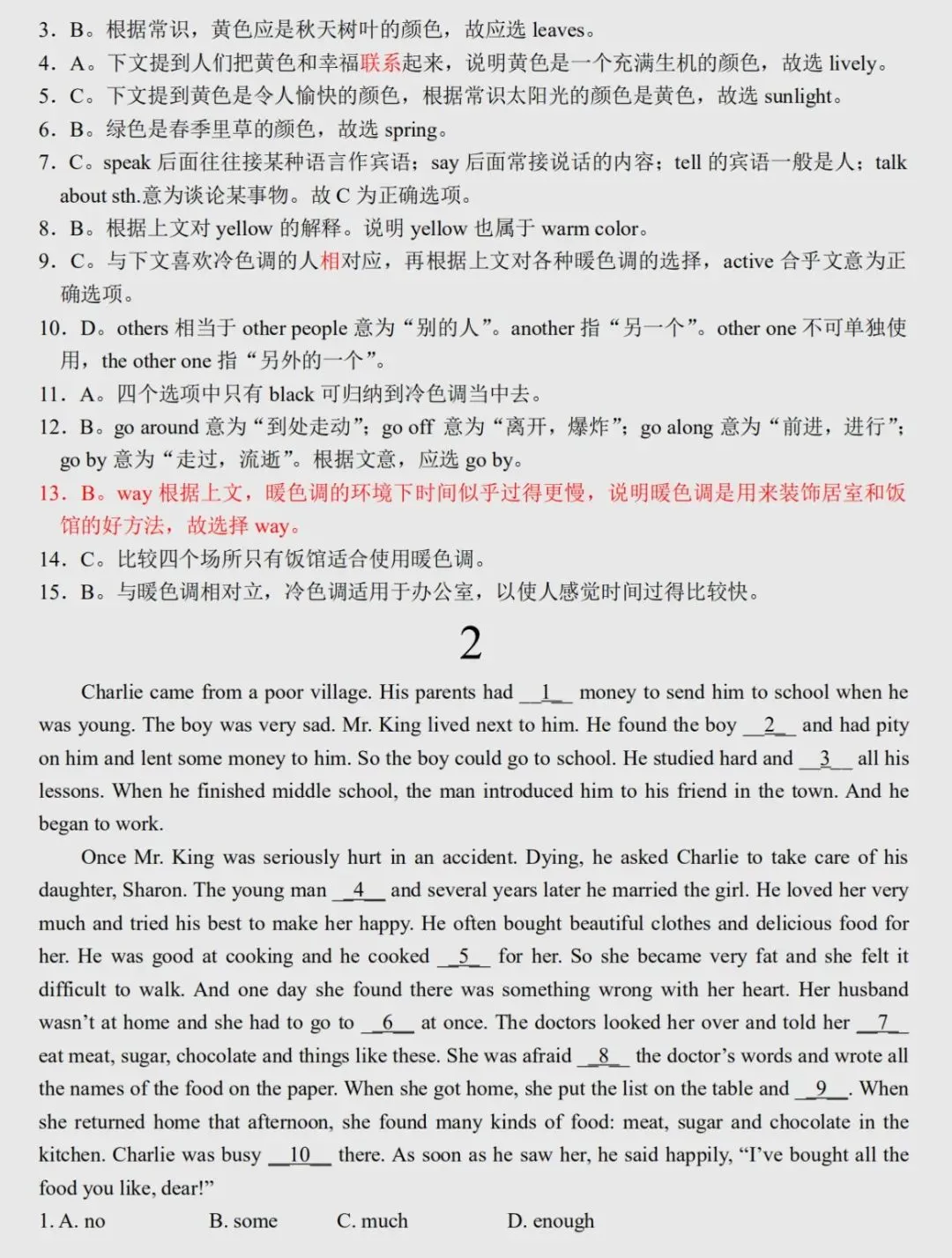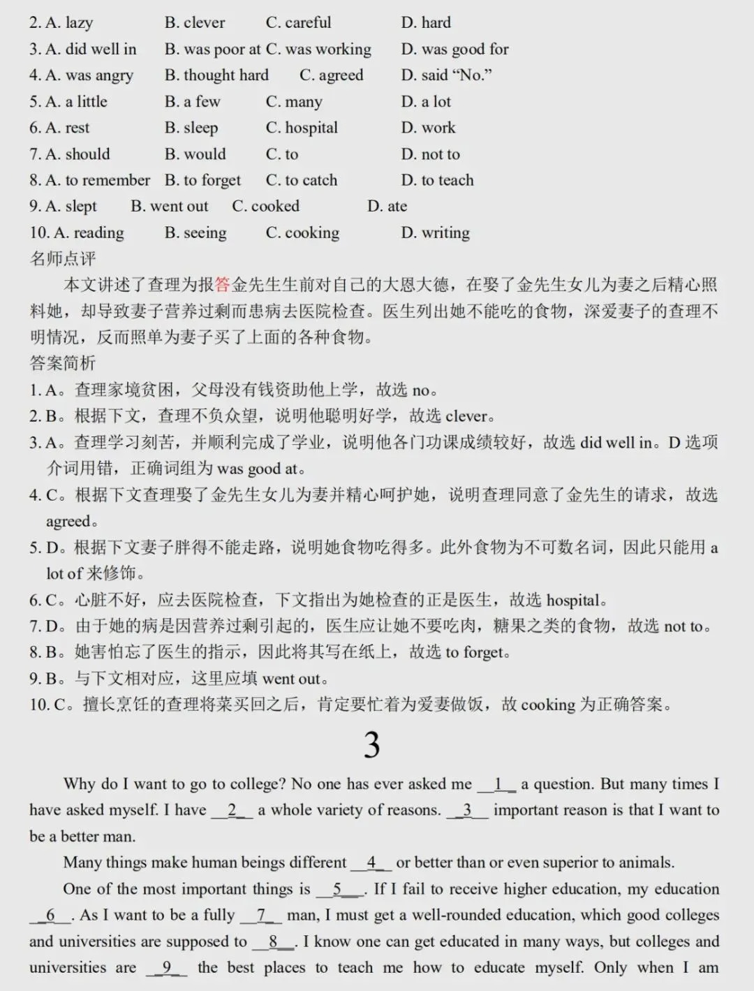 初中英语完形填空专项训练,英语学习必不可少的资料!