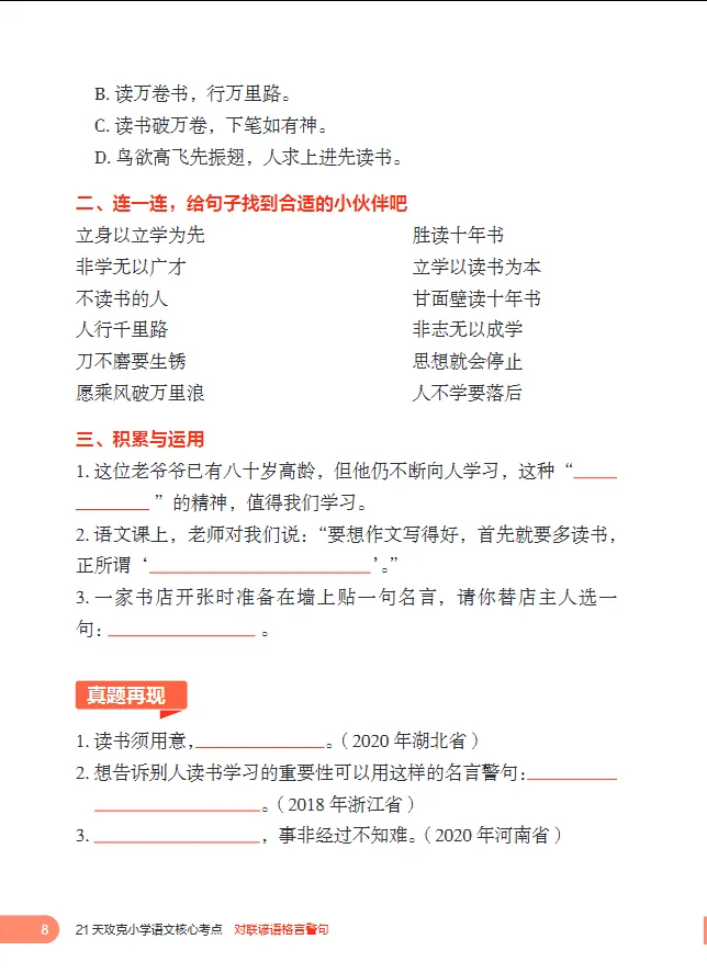 >学习资料库 2-10【21天攻克小学语文核心考点-06-对联谚语格言警句】