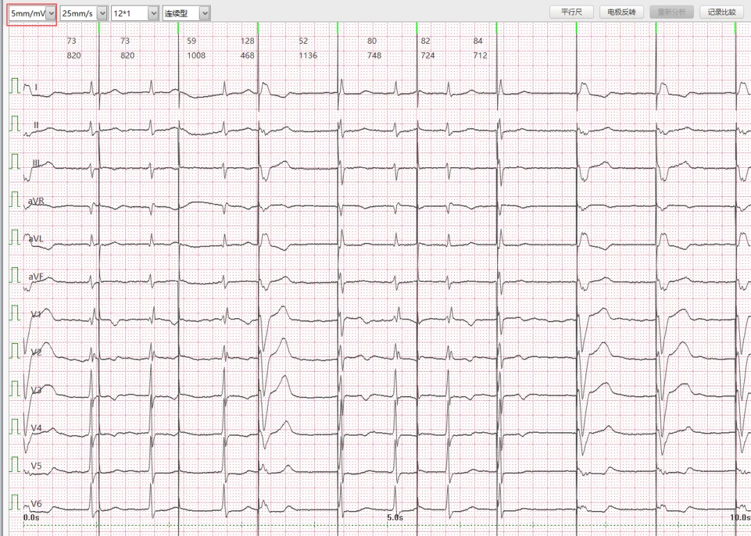图2. 该图为患者2021年做的心电图,该图起搏频率也为54次/分,