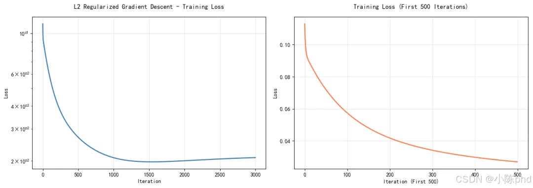 - • 收敛速度:快速下降,第 500 迭代后基本平稳