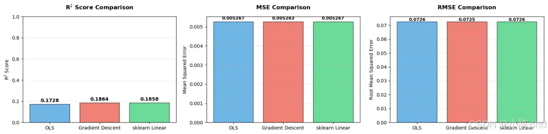特征 | OLS | GD(L2) | sklearn ----------|----------|-----------|----------AC | -0.1970 | -0.1926 | -0.1970CAL | 0.0036 | 0.0042 | 0.0036GR | 0.0055 | 0.0058 | 0.0055K | -0.1275 | -0.1248 | -0.1275SP | -0.0088 | -0.0081 | -0.0088