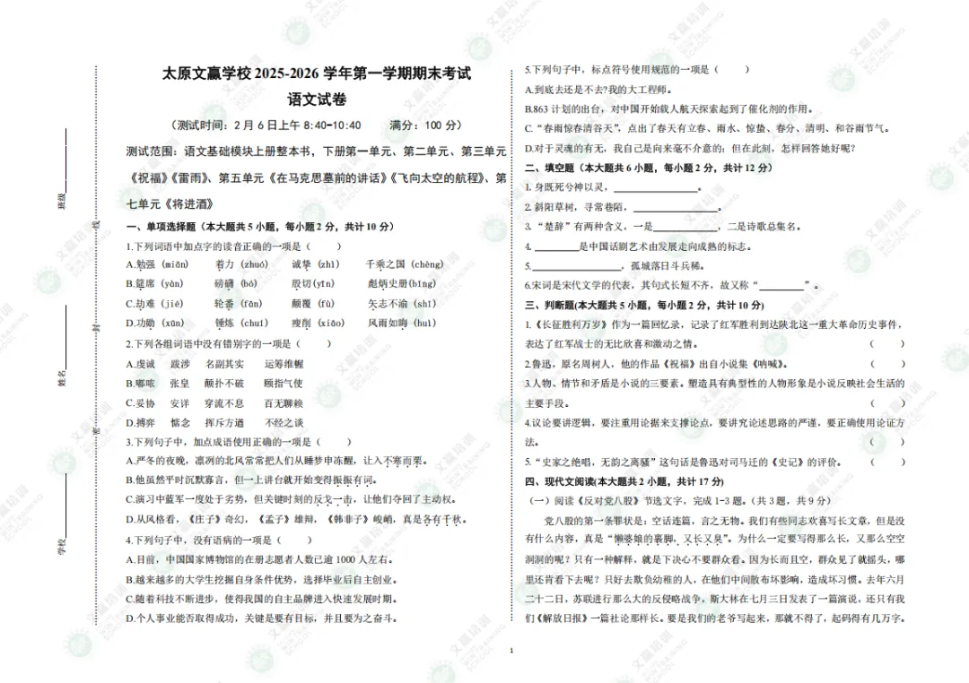学习资料 | 文赢对口升学(语数英)期末考试试卷,速领!