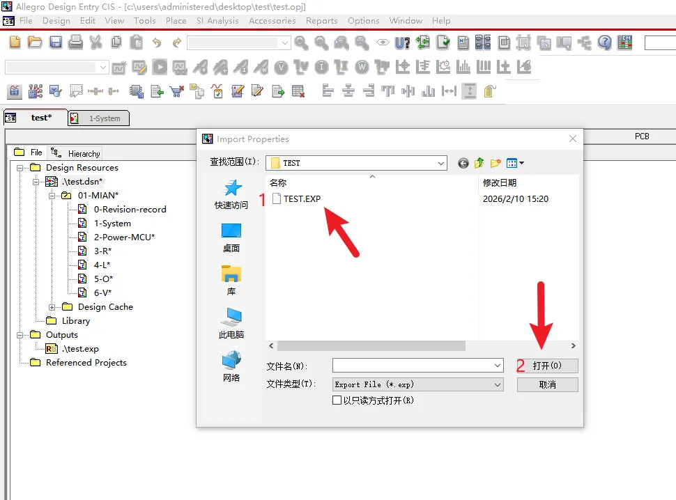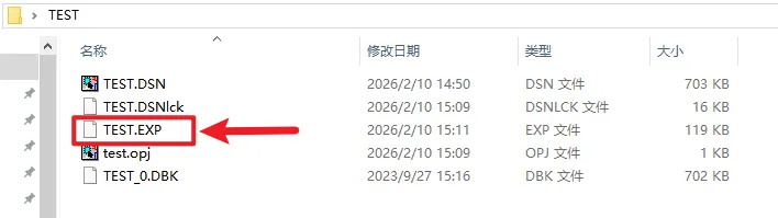 文件导入:点击 文件 -> 打开,文件类型选 所有文件 (*.*),找到那个.exp文件。