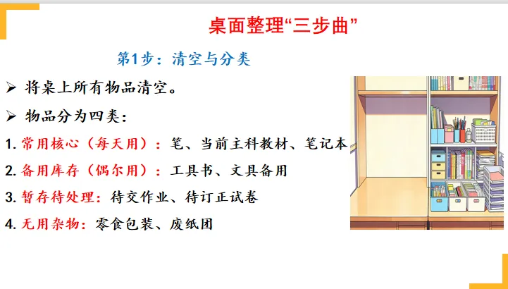 开一节班会课,让学生有整理的意识并指导怎么整理,我想是非常必要的。