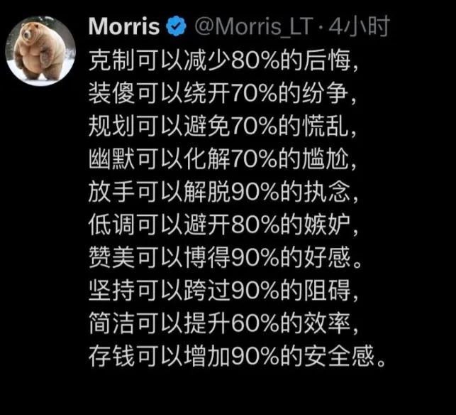 穷人的容错率低,心态就容易不好,财不入急门。富人的松弛感是因为有拖底,不必急。