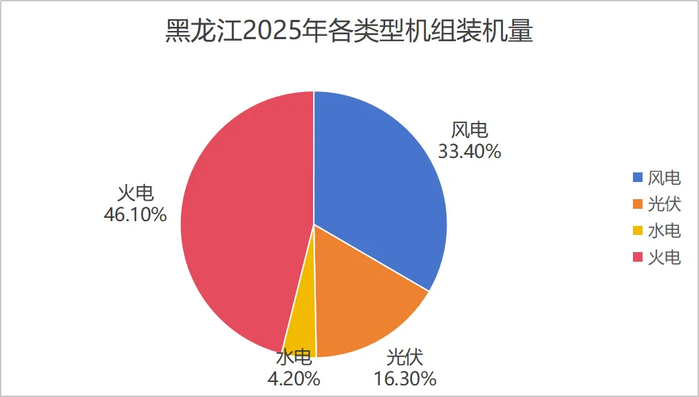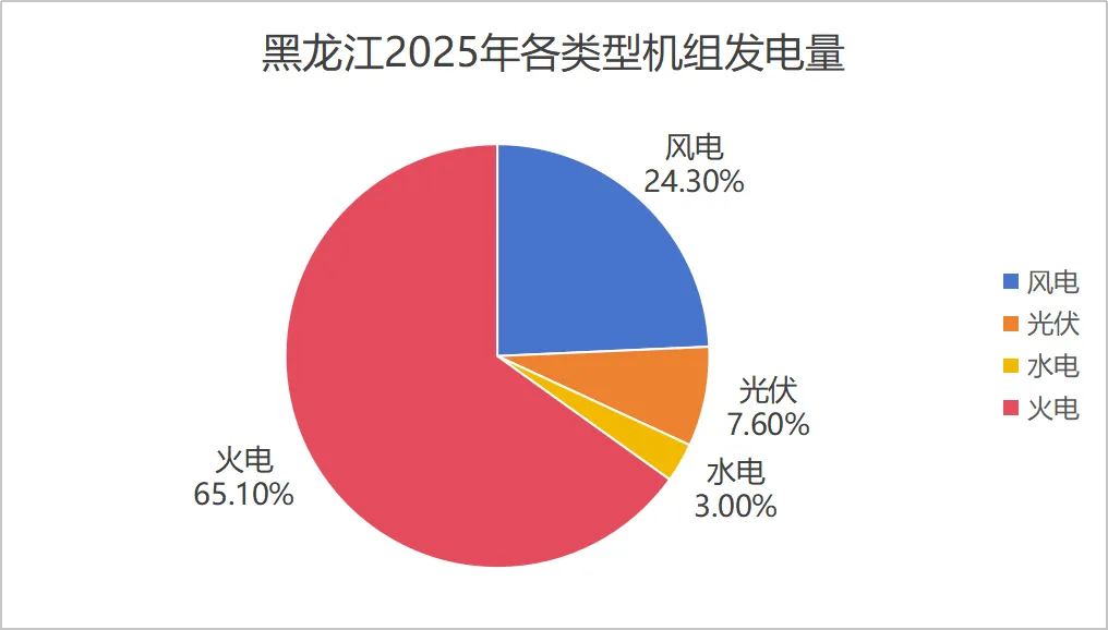 发电量:2025年,黑龙江电网各类电源总发电量1397.7亿千瓦时,同比增长5.0%,其中火电发电909.5亿千瓦时,占比65.1%,同比增长3.0%;水电发电41.6亿千瓦时,占比3.0%,同比下降12.4%;风电发电340亿千瓦时,占比24.3%,同比增长8.7%;光伏发电106.6亿千瓦时,占比7.6%,同比增长21.8%。