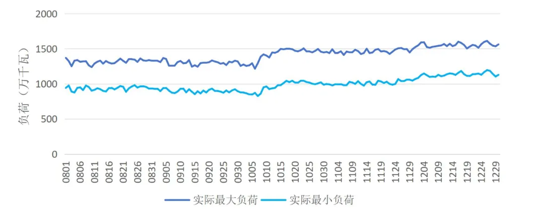 实时价格:7月份进入夏季,高温天气导致空调、制冷负荷大幅增长,叠加夏季“小风季”,风电出力骤降,现货均价逐月走高,至9月份平均均价达到全年高点433.66元/兆瓦时。9月及之后进入秋冬季节,天气凉爽用电负荷下降,叠加新能源出力大幅增加,分月现货价格逐月降低,至11月实时价格达全年最低,为181.70元/兆瓦时;12月进入冬季负荷有所增加,现货价格回升,但冬季大风天气多,风电等新能源发电量高于夏季,预计冬季高峰现货价格低于夏季高峰。