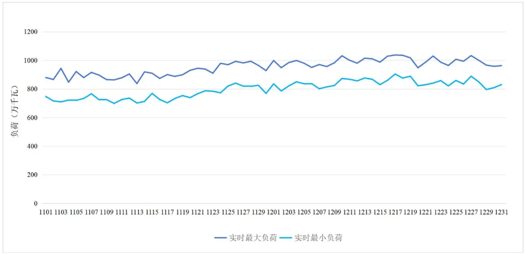 负荷情况:11月份,省调平均负荷为820.9万千瓦。新能源平均出力达1061.3万千瓦,凸显了新能源消纳与电力平衡的压力。省调联络线计划平均为495.7万千瓦。