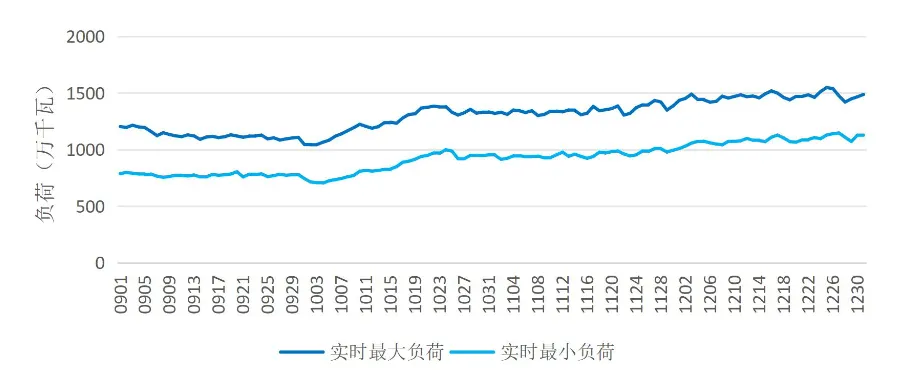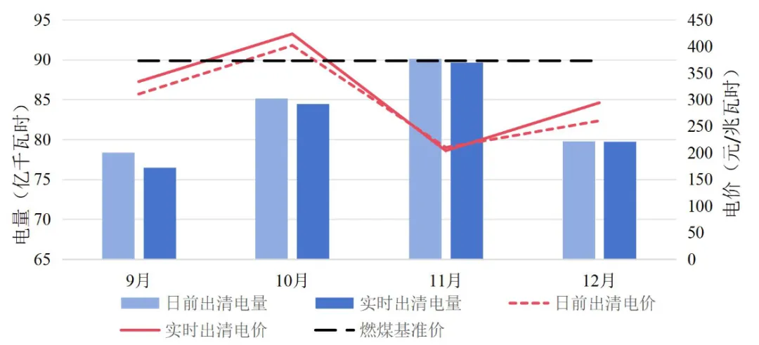 价格触限:9-12月实时价格触发最低限价(0元/兆瓦时)累计1127小时,占比约38%;触及上限仅在9月出现2小时、10月出现3.5小时,价格波动整体可控。