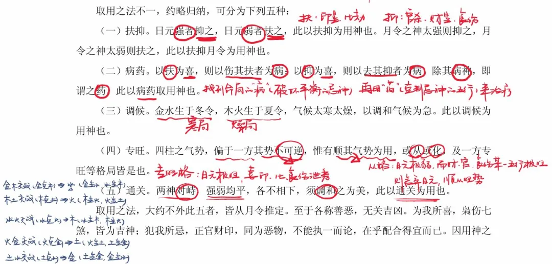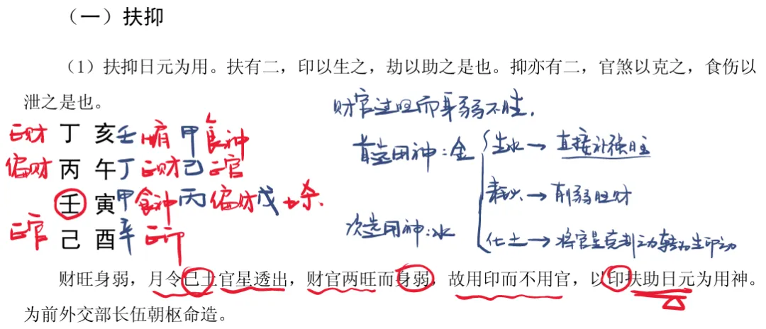 (一)扶抑:过强则抑制,过弱则扶持。针对日元或月令之神的旺衰进行平衡。