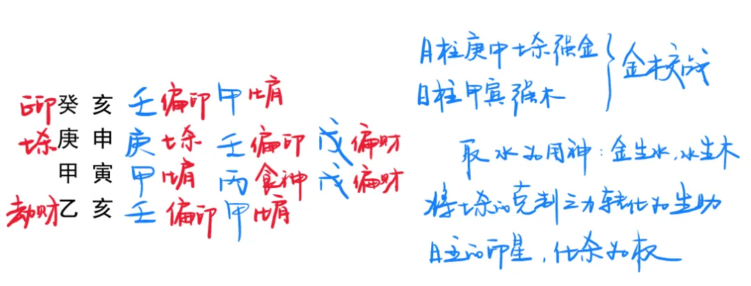 月令为七煞格,有食神制煞,但又透印星,此为 “去食护煞”。月令七煞,本喜食神制煞。但若局中又透印星,则会克制食神,导致七煞失制而攻身。月令印绶,印星力量不足时,喜见七煞来生印,煞印相生,反成贵格。此为“化煞为权”。5、煞格逢刃,不以为刃可帮身敌杀,而以为七煞制刃
