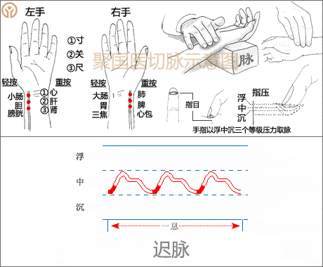迟脉属阴,象为不及;往来迟慢,三至一息。
