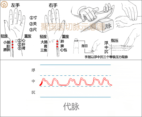 代主脏衰,危恶之候。脾土败坏,吐利为咎;中寒不食,腹疼难救。两动一止,三四日死;四动一止,六七日死。次第推求,不失经旨。
