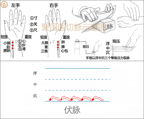 伏脉为阴,受病入深。伏犯左寸,血郁之证;伏居右寸,气郁之疴。左关值伏,肝血在腹;右关值伏,寒凝水谷。左尺伏见,疝瘕可验;右尺伏藏,少火消亡。