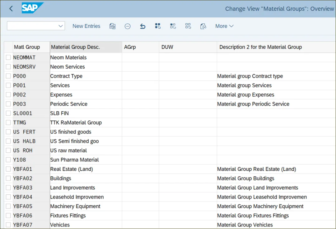 物料组用于将具有相似特征/属性的物料进行分组。来自同一物料组的这些物料可能属于多种物料类型,如原材料、成品、半成品等等。在 SAP S/4HANA 中创建物料主数据时,物料组是必需的。通过为物料组定义并分配授权对象,并利用这些对象来控制对物料组的访问,物料组可以在 SAP S/4HANA 中实现安全控制。在物料组级别定义授权,为处理安全和控制提供了灵活性。以下配置说明了物料组的定义以及使用物料组的其他关键配置。要定义物料组,请执行事务代码 SPRO,然后导航至“后勤 - 常规 • 物料主数据 • 关键字段设置 • 定义物料组”。下图展示了系统中已定义的物料组。点击“新条目”以定义一个新的物料组。输入一个九位的字母数字键来定义新的物料组,并为其输入描述。物料组定义中的关键字段如下:AGrp:在此字段中,为物料组定义授权组和一个四位的字母数字键。您可以根据业务需求,为不同的物料组定义不同的授权组,也可以为多个物料组定义一个授权组。在此配置中定义的授权组用于控制物料的创建、更改以及按物料组显示物料。物料组的描述 2:如果需要,您可以在此字段中为物料组定义额外的描述。采购组可用于管理特定物料组的采购。在这个配置步骤中,您可以将物料组映射到采购组。采购组会分配给创建和管理采购订单及框架协议的采购员或一组采购员。要将物料组分配给采购组,请执行事务代码 SPRO,然后导航至“物料管理 • 采购 • 采购申请 • 定义物料组与采购组的映射”。下图展示了物料组与采购组的映射。根据维护的映射关系,采购组 001 负责工厂 MJ00 中物料组 YBFA02 的采购,而采购组 MJ1 负责除 YBFA02 之外所有物料组的采购。点击“新条目”以定义新的映射。定义新映射时需指定以下字段:Plnt(工厂):在此字段中,指定您要在其中定义物料组与采购组映射的工厂。PGr(采购组):在此字段中,指定要映射到一个或多个物料组的采购组。采购组是采购组织内的一个组织单元。MatGr. Fr.(起始物料组):在此字段中,指定要在相应工厂内映射到采购组的物料组。如果要分配一个物料组范围,您可以在此字段中指定物料组范围的最低值。MatGr. To(结束物料组):如果要分配一个物料组范围,您可以在此字段中指定物料组范围的最高值。非活动:如果设置此指示符,则该行中工厂内物料组与采购组的映射将处于非活动状态。间接采购大多使用带有物料组和科目分配的自由文本项目来执行。会为这类采购订单项目分配一个科目分配类别,以便在收货时,消耗会直接过账到相应的科目分配类别(成本中心、内部订单、工作分解结构 [WBS] 等)。在收货和发票过账时,总分类账科目也作为这类采购订单项目的科目分配,用于财务科目过账。在此配置中,您可以为物料组分配评估类,以确定总分类账科目。要将物料组分配给采购组,请执行事务代码 SPRO,然后导航至“物料管理 • 采购 • 物料主数据 • 无物料主数据项目的输入辅助”。下图显示评估类 1199、1231 和 1276 分别分配给了物料组 148000000、153000000 和 168000000。在“ValCl”字段中直接将相关评估类分配给物料组。你若喜欢,点个❤️谢先👇