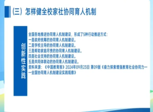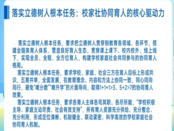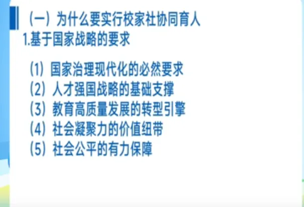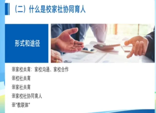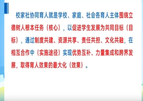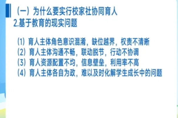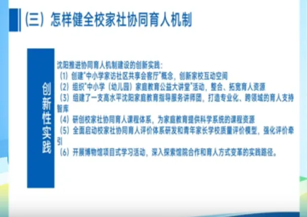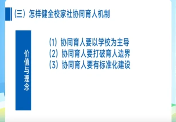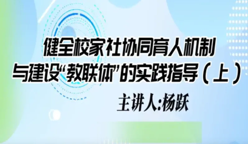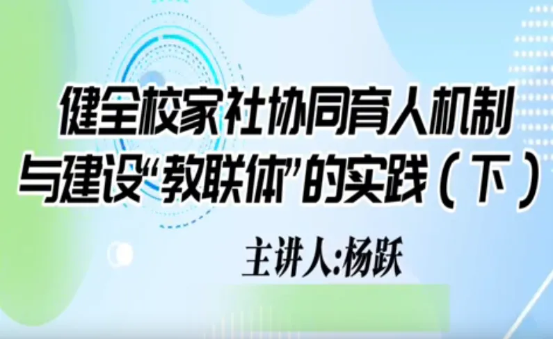今天学习第三十四、三十五课时《健全校家社协同育人机制与建设“教联体”的实践指导》《家庭教育指导的督导与效果评估 》。主讲人分别是沈阳市教育研究院家庭教育研究员、高级教师杨跃;