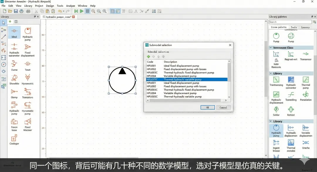 这是 Amesim 和其他软件最大的不同,也是新手最容易卡关的地方。你在库里拖出来一个“泵”,它只是一个图标。你必须告诉软件,这个泵是“定排量”的?还是“变排量”的?是“考虑热损耗”的?还是“绝热”的?- 右键大法:遇到不懂的参数,直接在参数名上右键 -> 帮助。Amesim 的帮助文档会直接跳到数学公式页面,告诉你这个参数代表公式里的哪个变量。