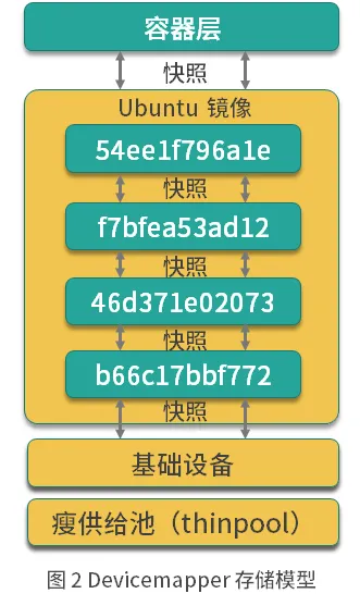Devicemapper 使用专用的块设备实现镜像的存储,并且像 AUFS 一样使用了写时复制的技术来保障最大程度节省存储空间,所以 Devicemapper 的镜像分层也是依赖快照来实现的。