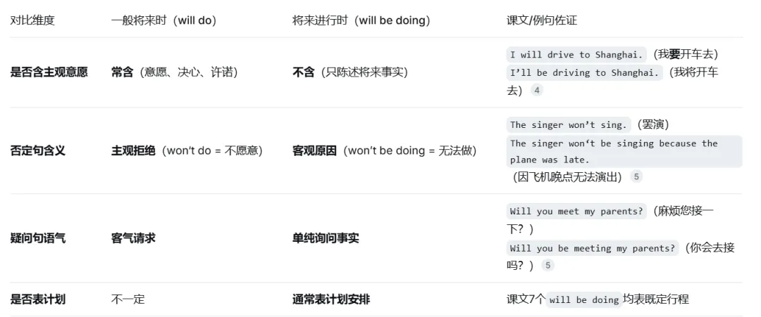 将来进行时 vs. 一般将来时——核心区别(本课最大考点)