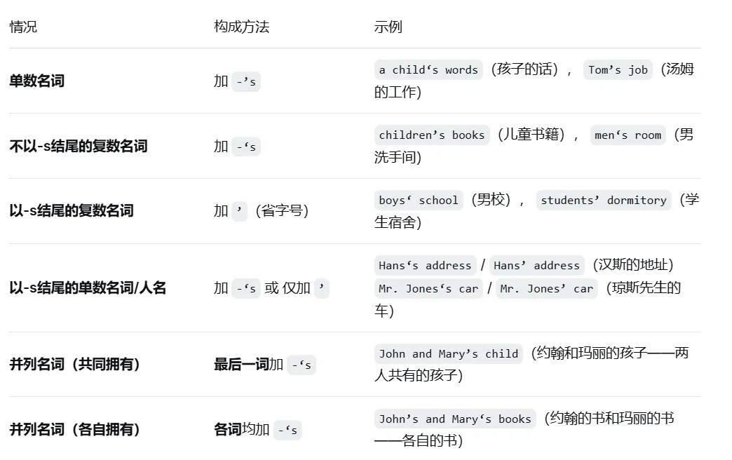 语法补充:名词所有格的构成规则(含时间/金钱的特殊所有格)