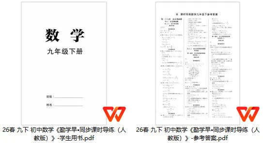 26春 九下 初中数学《勤学早•同步课时导练(人教版)》
