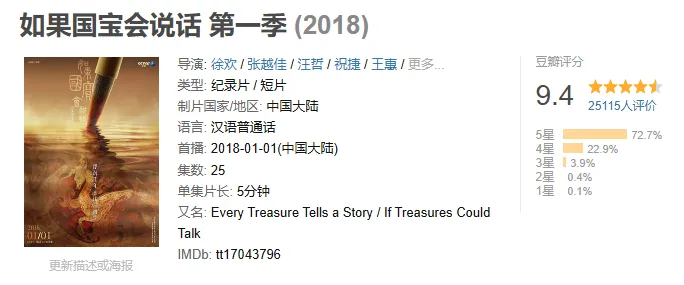 该纪录片以国宝级文物为线索,通过讲述文物背后的故事和历史文化,让观众了解中国悠久的历史和丰富的文化遗产。每一集都通过精美的画面和生动的解说,将文物背后的故事娓娓道来,让观众仿佛穿越时空与文物对话。