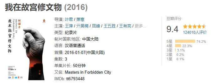 该纪录片讲述了故宫文物修复师们的工作和生活。通过展现文物修复的过程和修复师们的故事,让观众了解文物修复的重要性和难度。该纪录片还通过精美的画面和生动的解说,让观众感受到文物修复师们的专业精神和敬业态度。