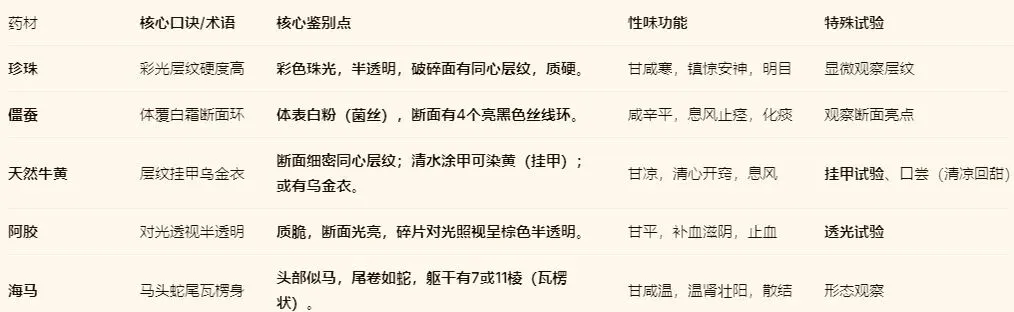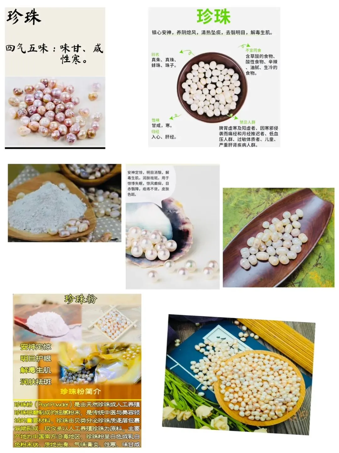 (6)联想记忆:珍珠乃贝蚌之“泪”,凝聚日月精华,其质重能镇,其寒能清,故能镇心安神、清肝明目。独特的珠光和同心层纹是其与仿制品(如玻璃珠、塑料珠)的根本区别。