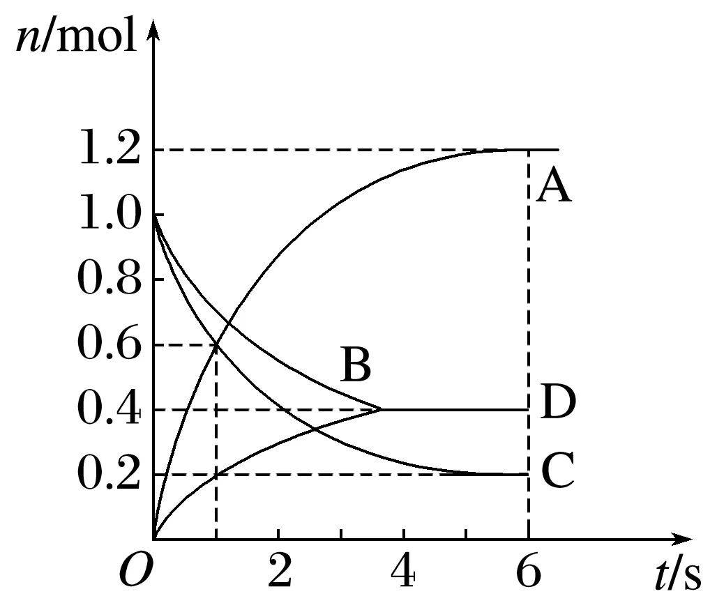 C.0~6 s内,B的平均反应速率为0.05 mol·L-1·s-1