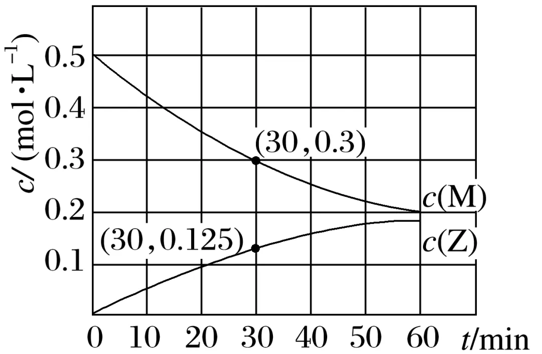 4.(2024·上海吴淞中学高二检测)室温下,某溶液初始时仅溶有M和N且浓度相等,同时发生以下两个反应:①M+N===X+Y;②M+N===X+Z。反应体系中组分M、Z的浓度随时间变化情况如图所示。