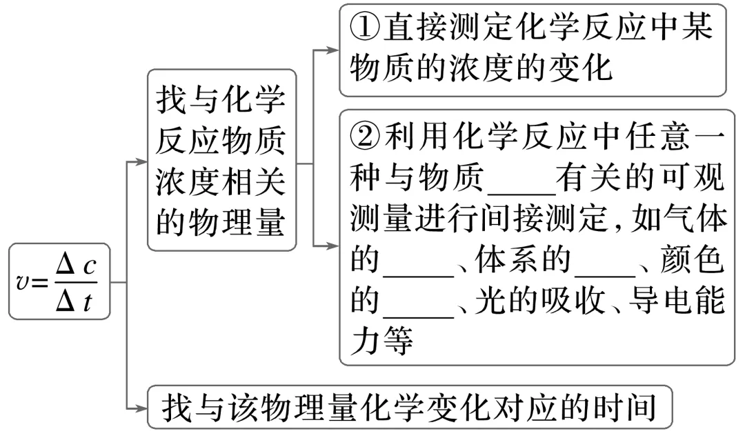 注意 在溶液中进行的反应,当反应物或生成物本身有比较明显的颜色时,可利用颜色变化与浓度变化间的比例关系来跟踪反应的过程和测量反应速率。