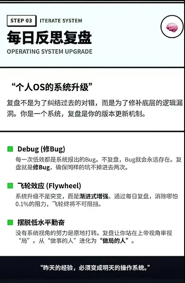 这一步,是"反馈转化为成长"的过程。盘,是最好的自我进化方式。
