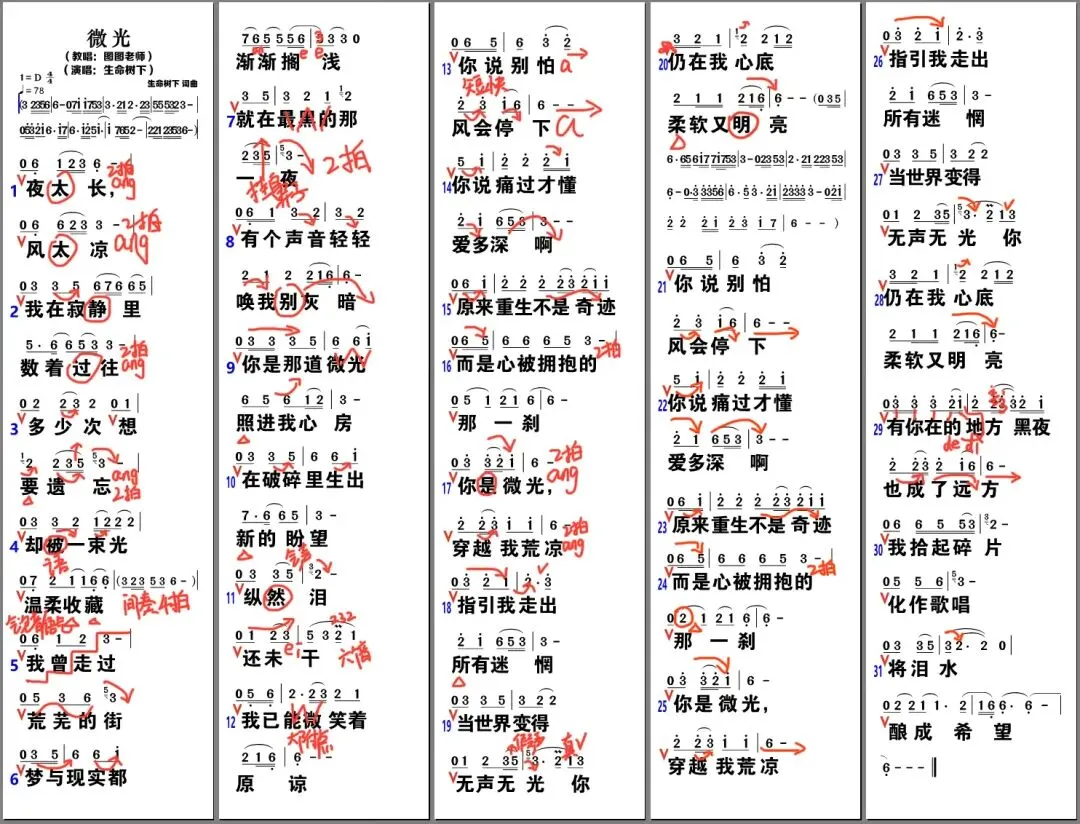 同学们,以上就是《微光》这首歌的全部学习资料,各位同学跟着学习资料一起巩固学习吧!