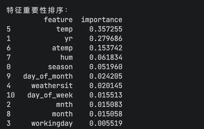 - 晴朗(1):平均租赁量最高,约为 4877 次 / 天。良好的天气是用户选择骑行的重要前提。