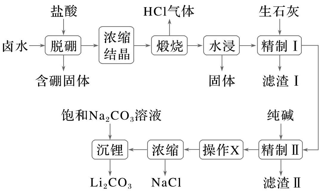 (填化学式);精制 Ⅰ 后溶液中Li+的浓度为2.0 mol·L-1,则常温下精制 Ⅱ 过程中CO2-3浓度应控制在__________________mol·L-1以下。若脱硼后直接进行精制 Ⅰ,除无法回收HCl外,还将增加__________________(填化学式)的用量。