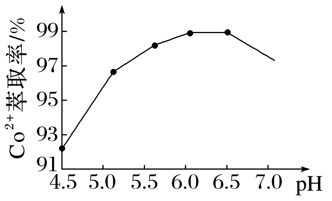 (3)萃取、反萃取:加入某有机酸萃取剂(HA)2,实验测得Co2+萃取率随pH的变化如图所示。向萃取所得有机相中加入H2SO4,反萃取得到水相。