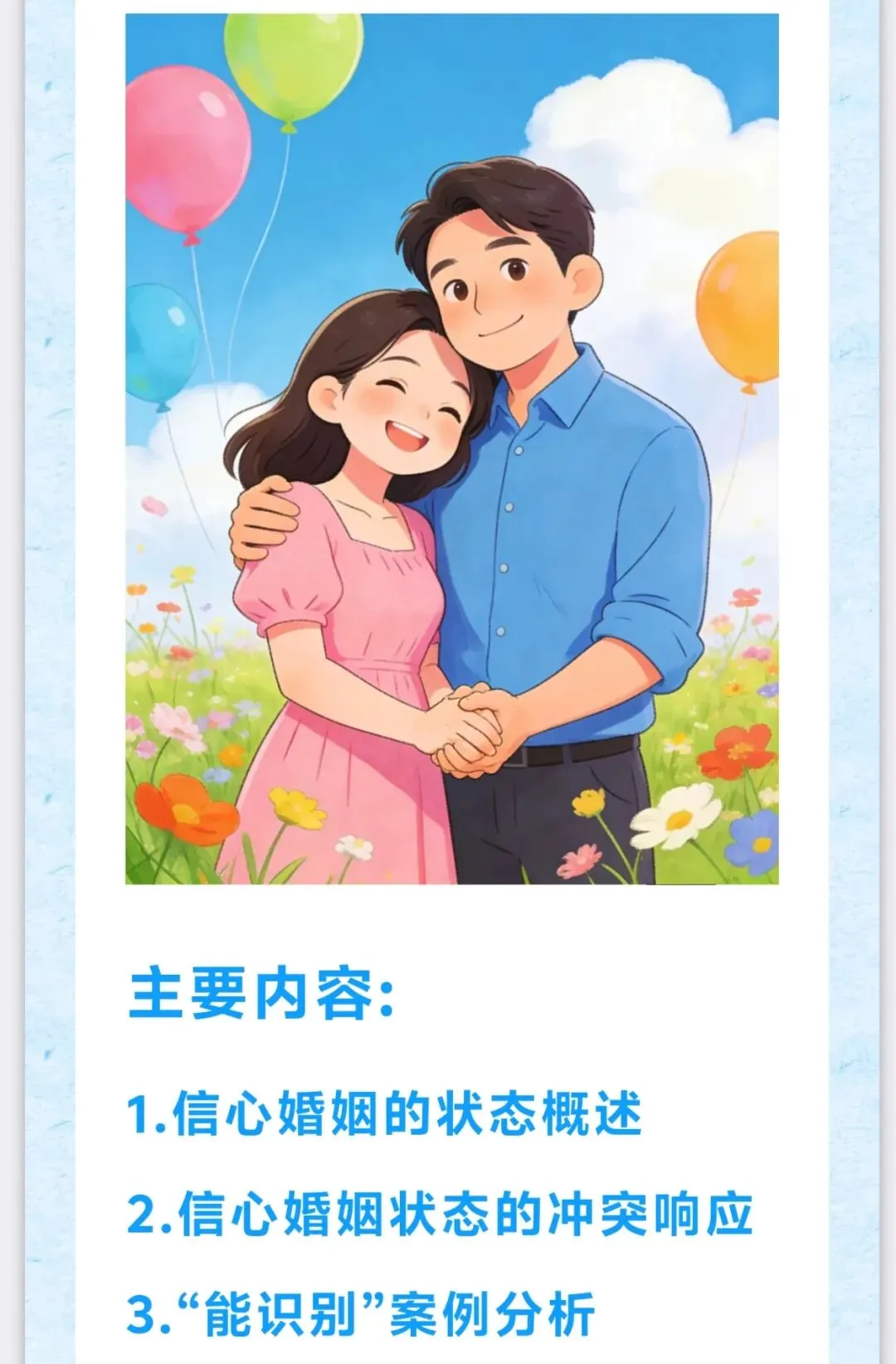 思考“信心婚姻”的积极意义以及局限,容易出现的误区和出路。