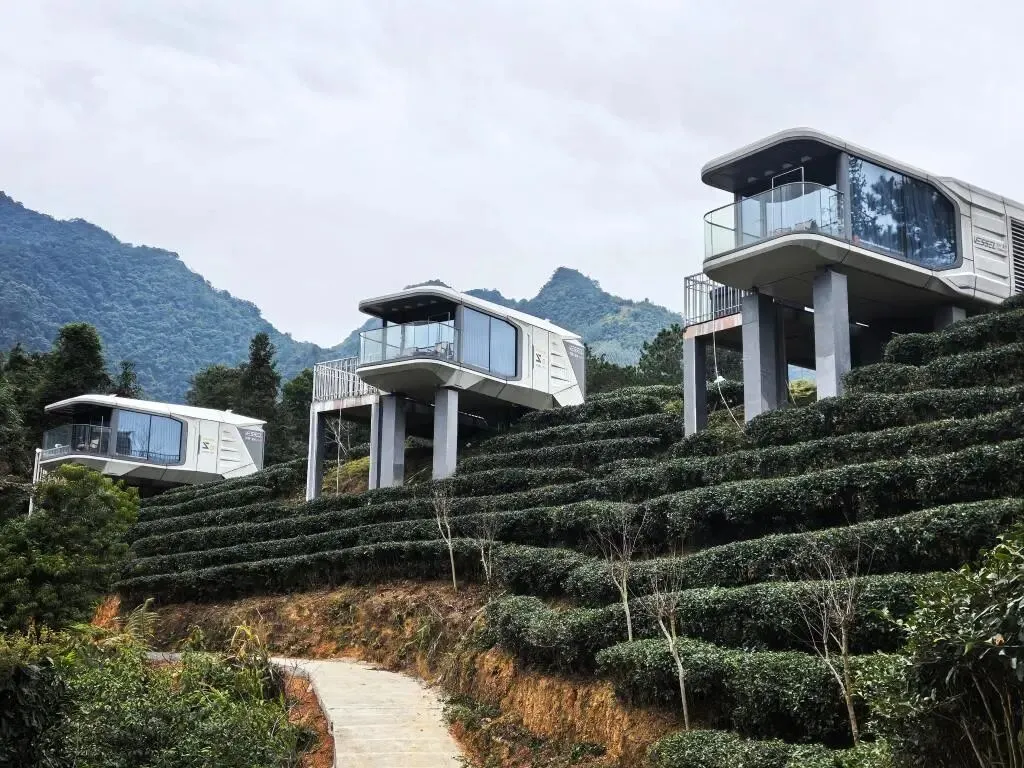 图为广西贺州昭平鹊鸣春有机茶园太空舱民宿。新华社记者王楚然 摄