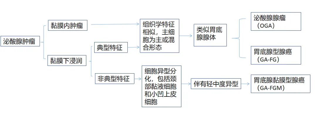 • 局限于黏膜内:命名为 “泌酸腺腺瘤(Oxyntic gland adenoma,OGA)”;