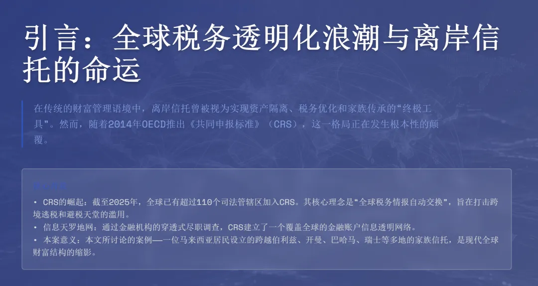 在全球税务透明度日益提高的背景下,传统的跨境信托架构面临前所未有的挑战。CRS及其2.0版本的实施,使得信息交换更加全面、深入,跨境资产的隐匿空间大幅缩小。