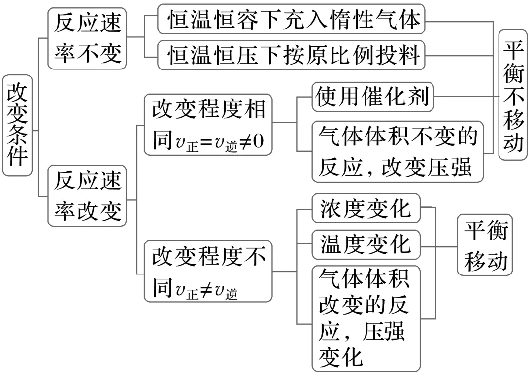 | 看坐标,定意义; 零起点,定投料; 线变化,定条件; v高低,定移动。 注:改变浓度条件,图像一点保持连续;改变温度或压强,两点突变 |