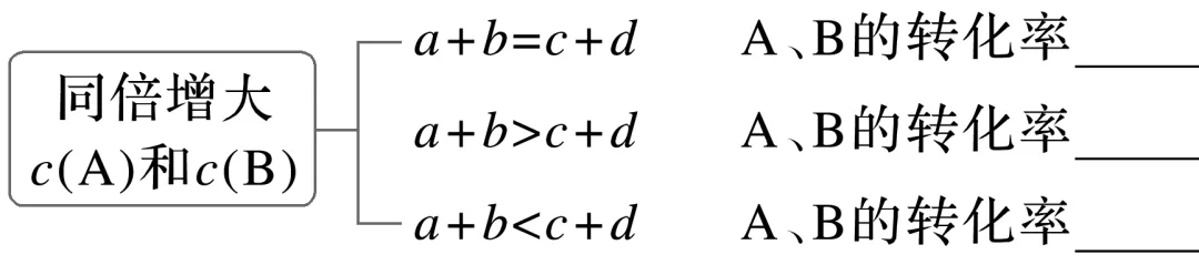 ③在恒温恒容条件下,若按原比例(投料比)同倍数增加A和B,平衡正向移动,但反应物(A或B)的转化率等效为压强对平衡的影响。