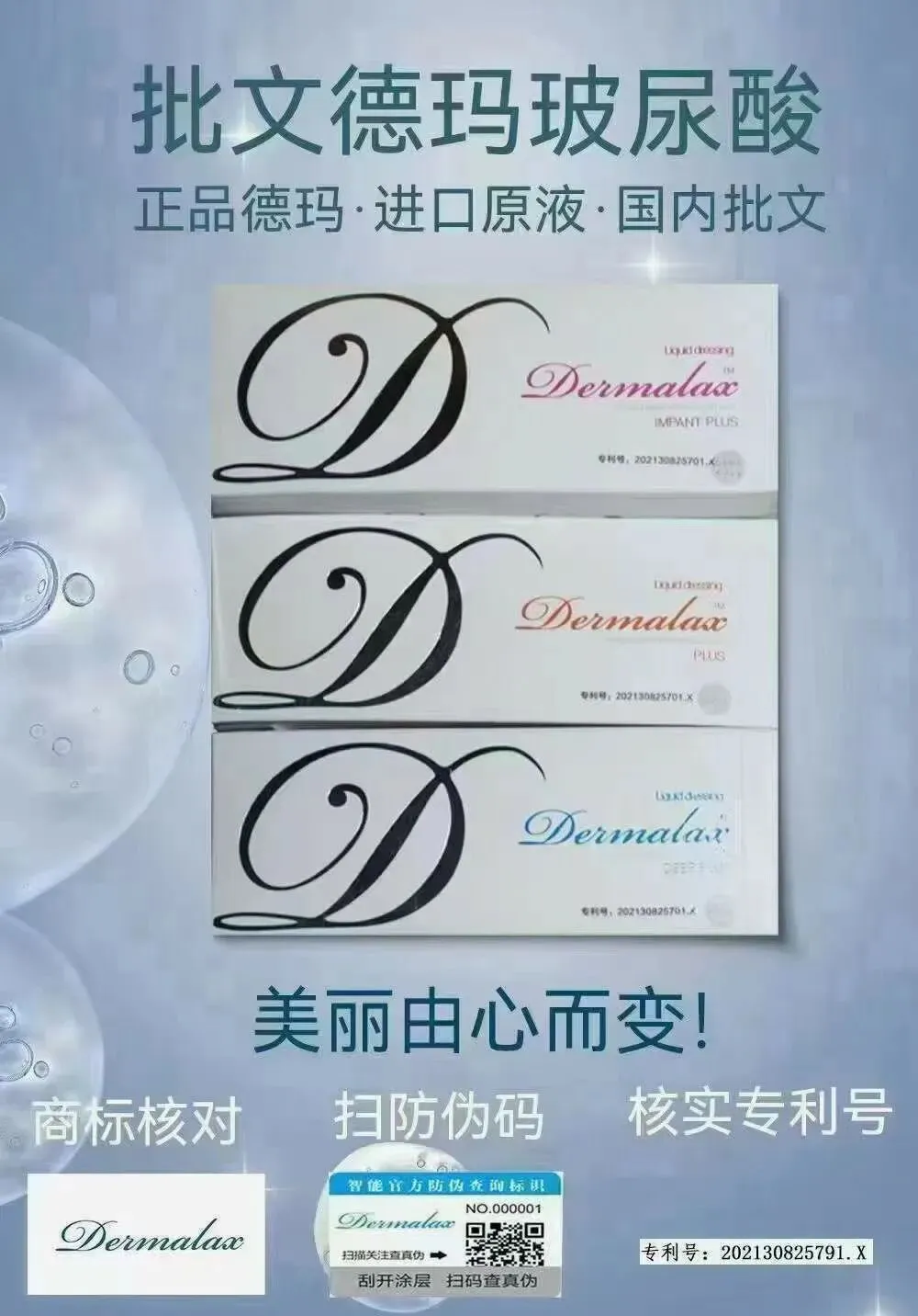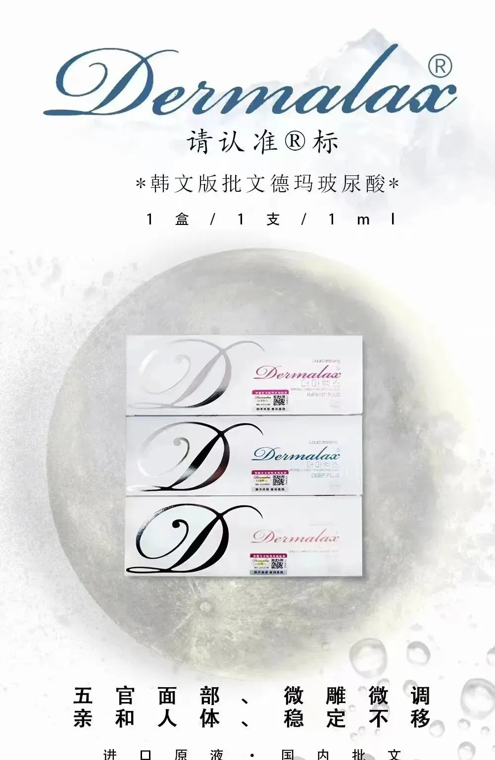 德玛玻尿酸,全称为德玛莱斯(又名德拉美斯)Dermalax玻尿酸,分大分子、中分子和小分子三种型号。