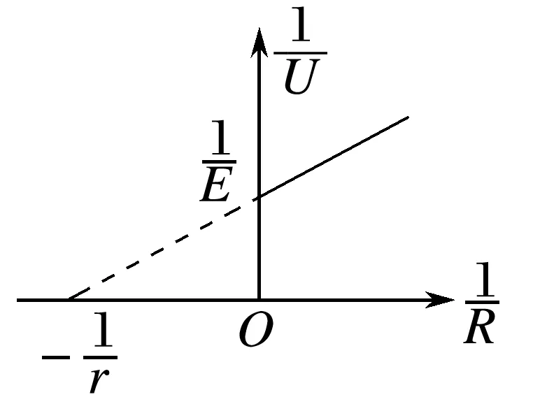(2)图像法:由E=U+URr得:1U=1E+rE·1R。故1U-1R图像的斜率k=rE,纵轴截距为1E,如图。