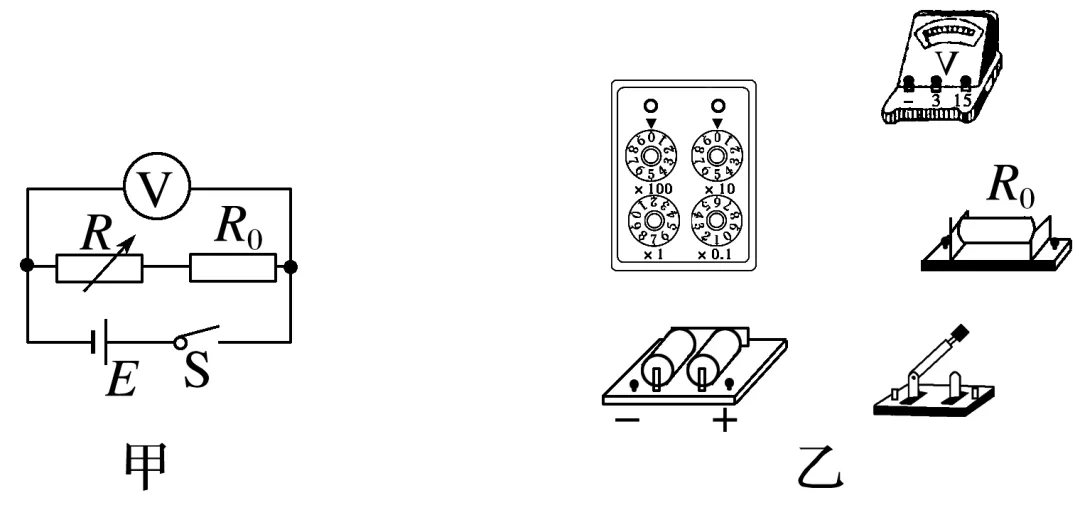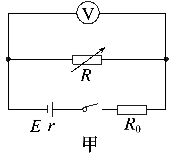 要测量一电源的电动势E(小于3 V)和内阻r(约1 Ω),现有下列器材:理想电压表(3 V和15 V两个量程)、电阻箱R(0~999.9 Ω)、定值电阻R0=3 Ω、开关和导线。某同学根据所给器材设计了如图甲的实验电路:
