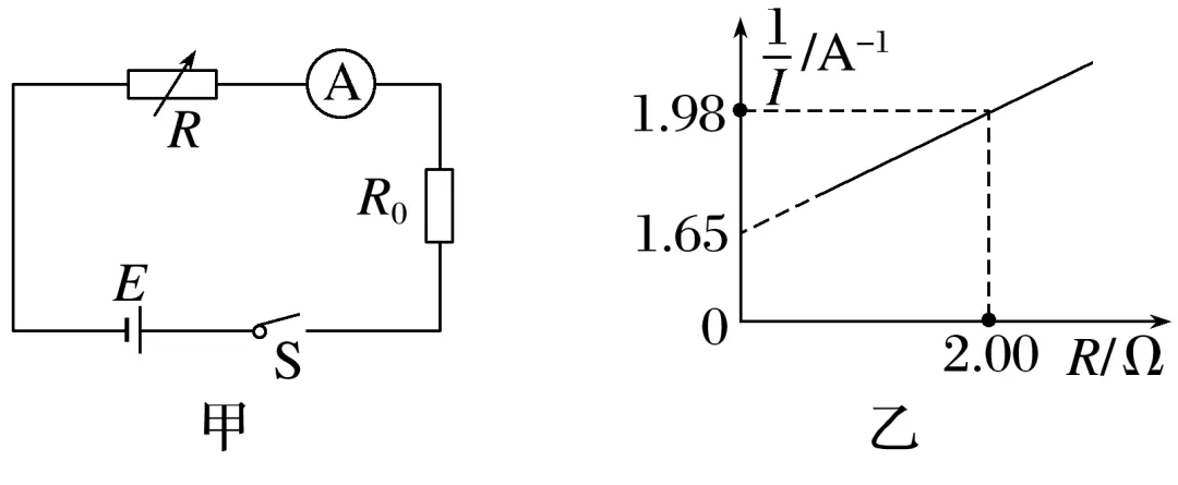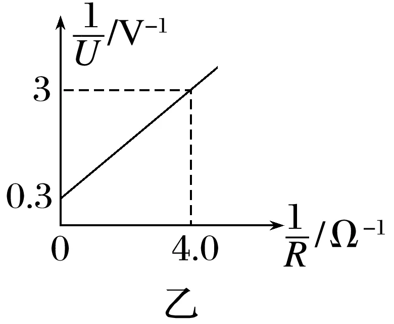 R- 1I图像的斜率k=E,纵轴截距为-r(如图乙)。