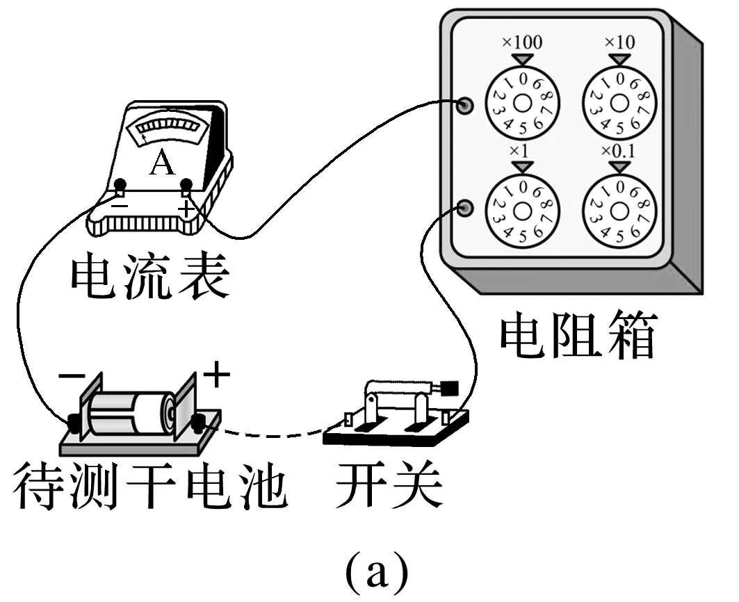 (2)实验测出多组电阻箱阻值R和电流表示数I,并计算出1I数据,根据数据,在方格纸上作出了R-1I关系图像如图(b)。由图像可计算出该干电池的电动势为________ V;内阻为________ Ω。(结果均保留三位有效数字)
