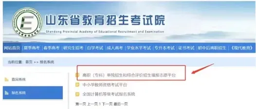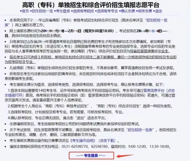 - 操作:登录山东省教育招生考试院官网 → 点击【网上报名】 → 进入【高职(专科)单独招生和综合评价招生填报志愿平台】