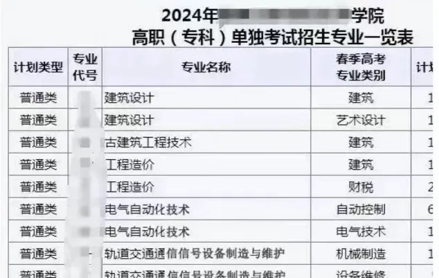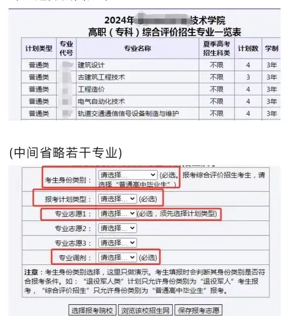 - 单招:报考专业需与春季高考专业类别一致,按计划类型、专业代号、名称选择。